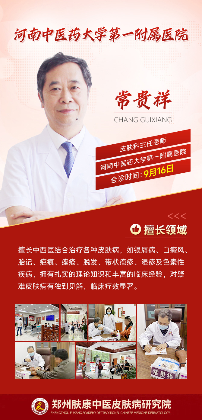 特邀常贵祥教授、高永军教授于9月16-17日莅临郑州肤康会诊。