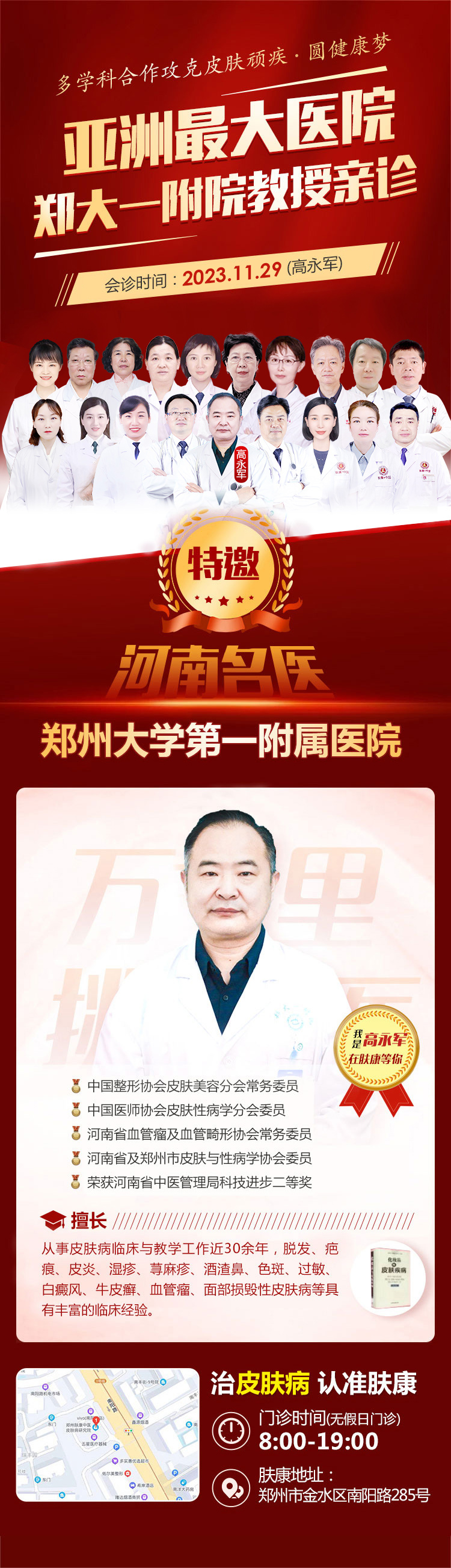 特邀高永军教授于11月29日莅临郑州肤康会诊